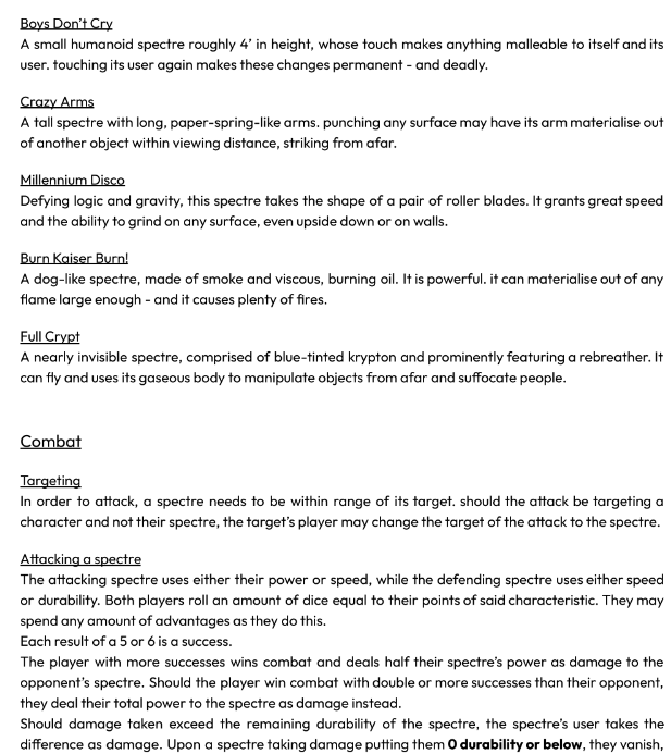 Coming out swinging, this is a raw and pure prototype looking to create snappy and character-driven fights between colorful spectres and the people who wield them. Take on the role of a conjurer of the weird and fight for what you know is true and beautiful.